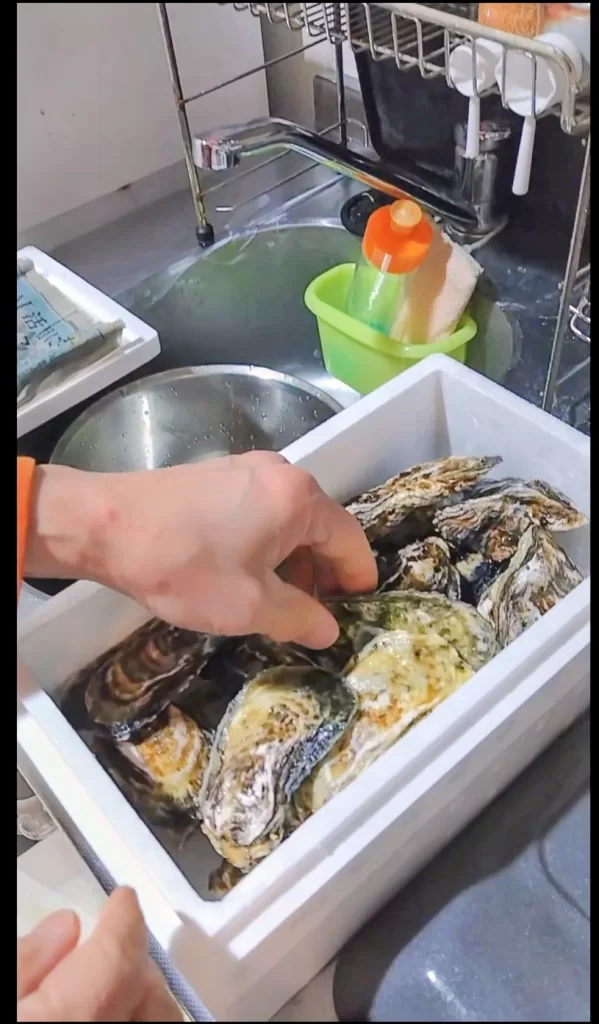 まずは、届いた箱を開けると、綺麗に洗われたカキがたっぷりと、今日は16個入ってました。