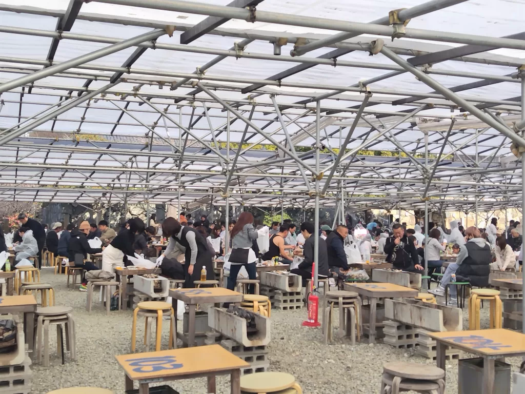 殻付きカキの販売も大盛況で、すれ違う皆さんは、大きなビニール袋に入った牡蠣を持ってはりましたが、在庫は残り少なくなっていました。